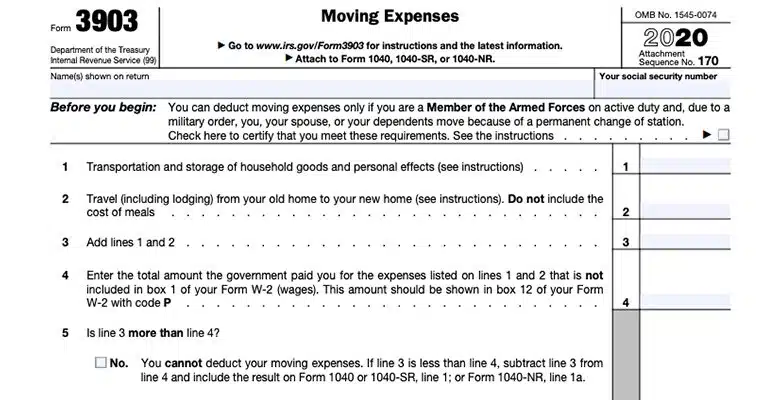 Yes, if you’re an active member of the military, you still qualify for this (Form 3903, Moving Expenses). It is important to remember that if you’re a military member moving due to a permanent change of station, moving between duty stations, or you’re moving to a final station before retirement, you will be excluded from distance requirements. What are these distance requirements? In essence, in order for a move to be tax deductible, your destination or new address needs to be a minimum of 50 miles away from your old address. Additionally, you would need to start your new job/work assignment within a year of living for it to be considered tax deductible.