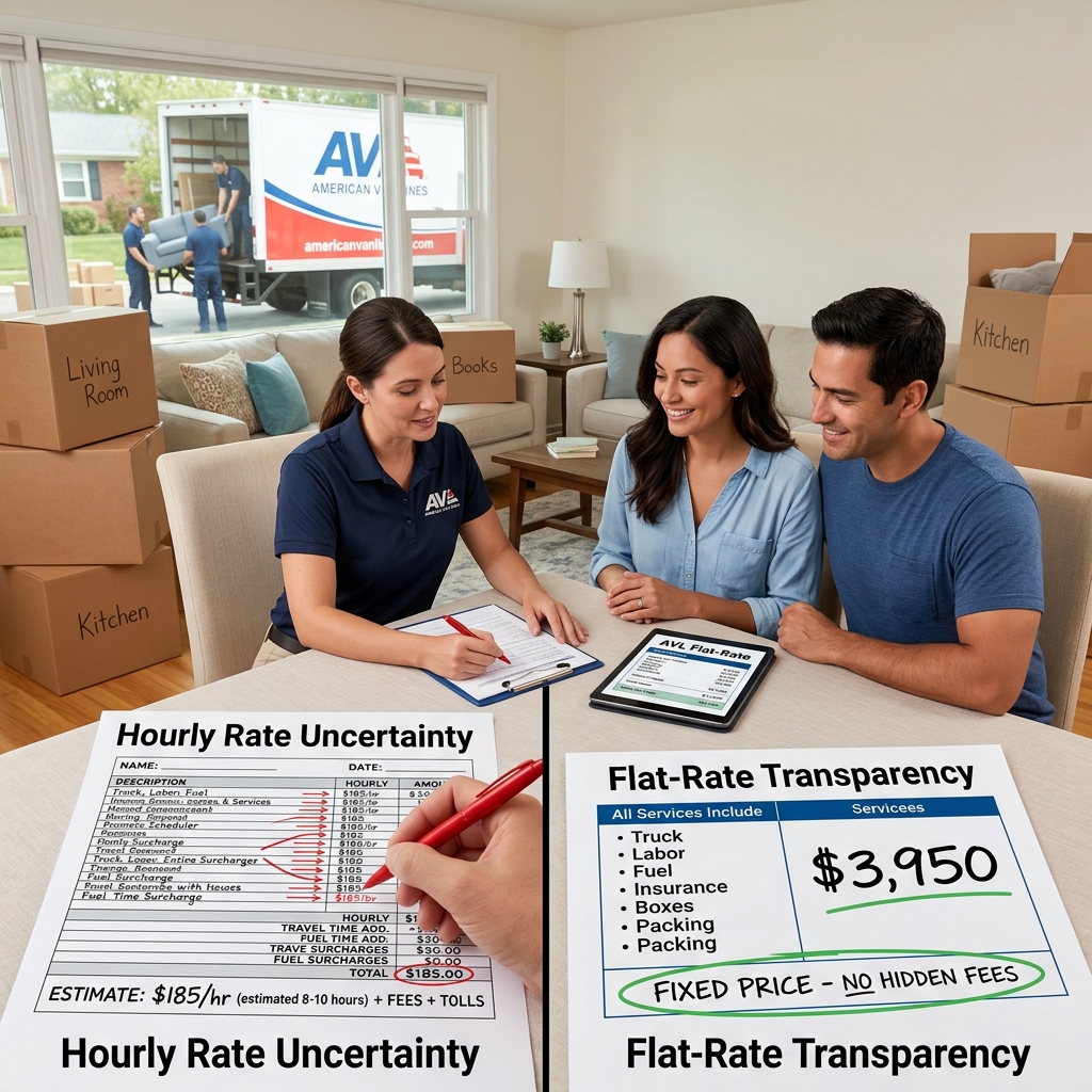 That’s why we built our entire moving model around flat-rate pricing and complete transparency. When you work with American Van Lines, you know exactly what you’re paying from the moment we provide your estimate.